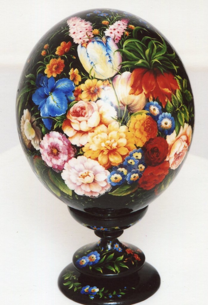 Ручная роспись страусиного яйца на любую тематику: иконы, репродукции картин, фотографии ваших близких, народная роспись и прочее.